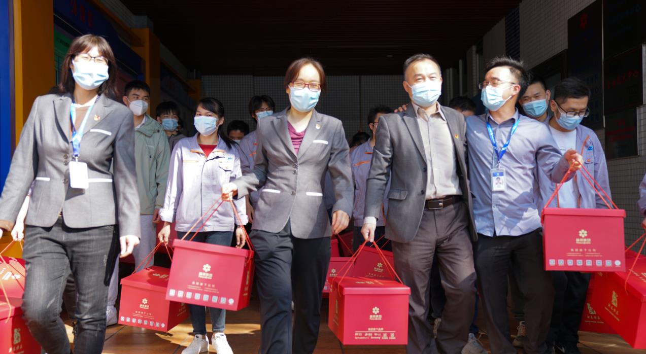 1月14日,在集團(tuán)黨支部書記陳雪兒的帶領(lǐng)下,為員工發(fā)放米、面、油、糖果、曲奇餅等春節(jié)福利,一份份沉甸甸的禮品,滿載著集團(tuán)對員工及員工家屬的關(guān)懷問候和新春祝福。